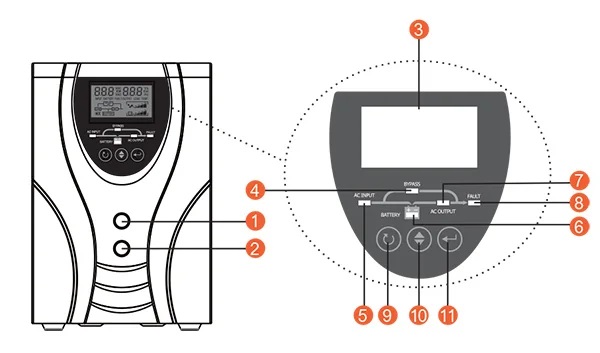 It is a cost effective, intelligent UPS. The comprehensive LCD offers user-configurable and easy-accessible button adjustment such as frequency, buzzer etc.